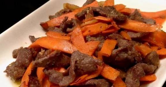 做法:1蒜頭切片。胡蘿卜去皮,切成手指寬的薄片。牛肉切成薄片,放入1個雞蛋清、雞粉、生粉。