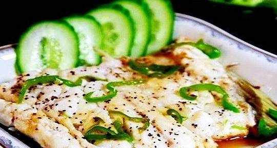 4、這時魚肉基本沒有血絲,將青椒撒上,淋上些生抽,蓋鍋再燜1-2分鐘,魚肉微微分離起鍋,這時候的魚不僅熟瞭,而且最鮮嫩。