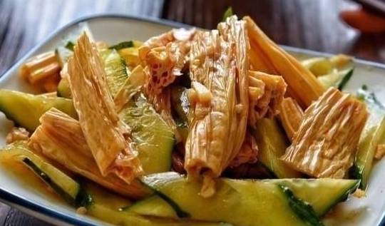 材料:腐竹100克黃瓜一個;紅油一大勺麻汁二大勺生抽適量米醋適量白糖適量老醋適量雞粉適量;