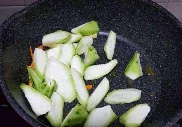 炒絲瓜時,別忘瞭及時攪拌,不要放著。由於絲瓜比較吸油,先炒一會,然後入鍋炸好後,從鍋邊倒入少許水。加少許水邊攪拌邊炒,絲瓜軟得更快,熟得也更快。而且絲瓜裡面的湯比較容易炒,雞蛋變軟的時候就把雞蛋放在絲瓜裡面。在此期間,您可以準備香料。調味後加入適量鹽和少量雞精,增加鮮味。上菜前別忘瞭搖晃準備好的大蔥!