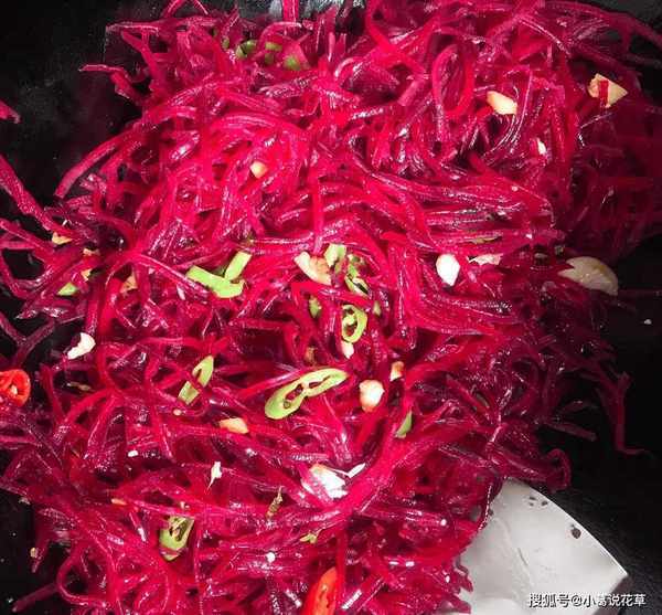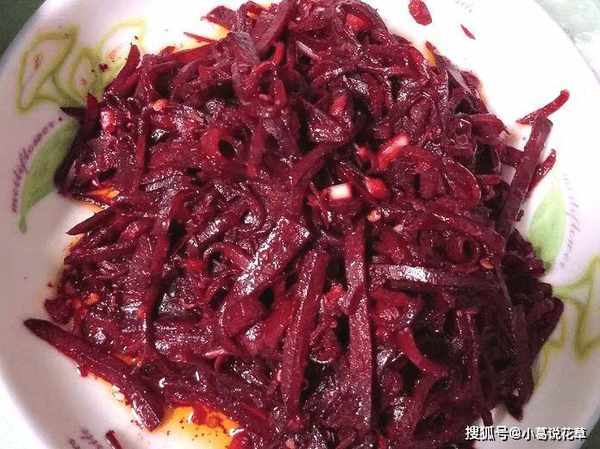 甜菜根很爽口,怎麼炒都不會膩。是一道老少皆宜的美食。貧血的人常吃一些。能加速造血細胞,有滋補之功效,改善失眠,預防三高。