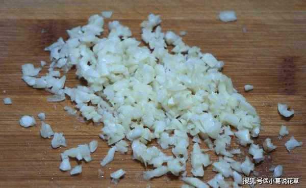 2、這時候我們將準備好的大蒜去殼處理,洗凈,切成粒狀,放入小碗中,倒入適量的鹽、雞精、醬油,快速拌勻。.