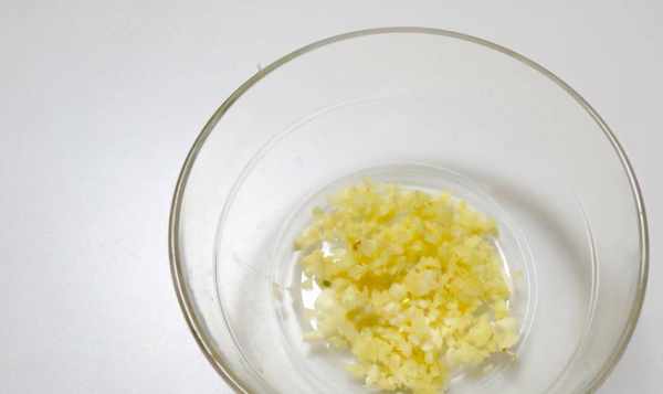 7、接下來調制蜜汁醬料,根據自己的口味調節,先把薑末和蒜末放進碗裡。