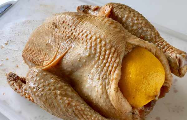 13、再拿一個完整的檸檬塞到雞屁股那裡,這樣可以防止蔬菜漏出來,烤雞也會有淡淡的檸檬香,然後用麻繩把烤雞纏起來。