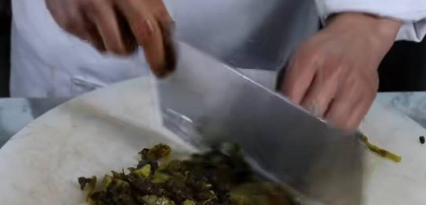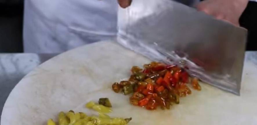 酸菜和泡椒分別改刀備用,酸菜可以提前用水泡一下,去除多餘的鹽分,不泡水的話,