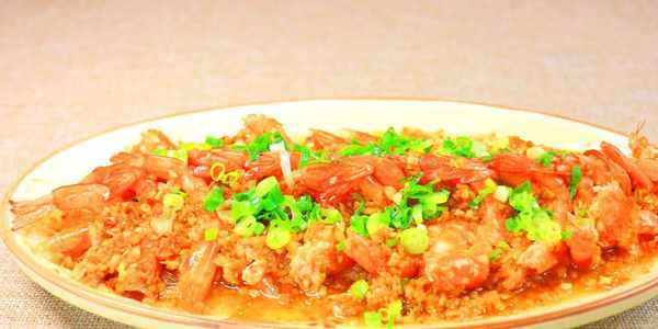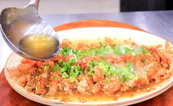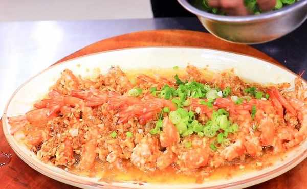 好瞭,一道鮮香十足的蒜蓉開邊蝦就做好瞭。