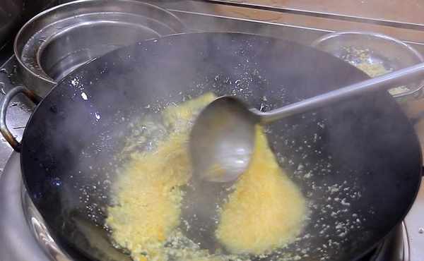 鍋內燒油,油溫七成熱時起鍋,把熱油澆在蔥花上面,激發出蔥、蒜的香味即可。