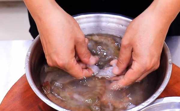 準備鮮蝦500克,剪去蝦頭、蝦腿,把蝦從中間片開,下刀的時候要偏一點以免劃斷蝦線,然後去除蝦線,把蝦清洗幹凈備用。