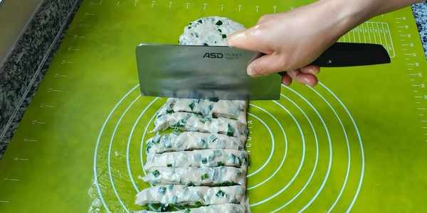 8,刀刃上抹一層食用油,防止粘連,把它切成均勻分塊。