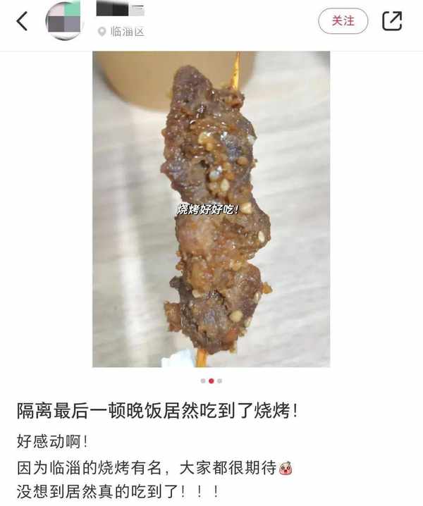 因為曾在淄博的臨淄區隔離,得到很好的照顧,離開前最後一餐甚至吃上瞭“小烤串”。