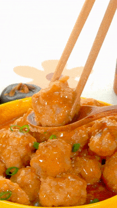 將調好的醬汁煮到濃稠,再次把丸子下進去。稍微炒幾下,讓丸子表面均勻的裹上芡汁,再盛出來。