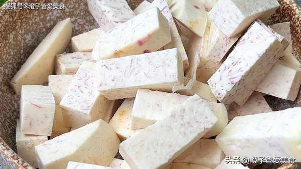 1.把香芋切成這種長條就可以瞭,放碗裡備用。