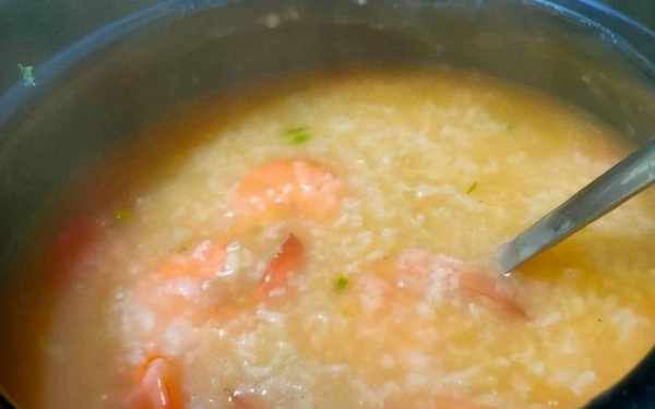 蝦頭粥【材料】蝦頭蝦可以放點玉米、黃瓜、胡蘿卜這些蔬菜,調料鹽就夠瞭