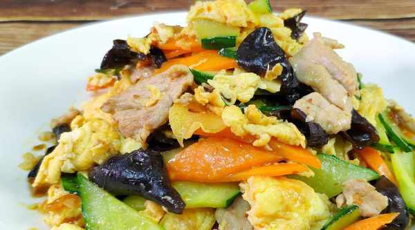 ?木須肉木須肉,一道非常傢常又美味的下飯菜,食材種類多,營養全面,色彩豐富,一般包含黃瓜、胡蘿卜、木耳、雞蛋、肉等等,不同顏色不同口感的食材搭配在一起,創造出不一樣的美味!