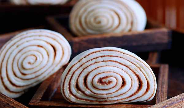 13、蒸制作好的成品出鍋裝盤啦,這是第一種的卷法,卷的不是很緊,卷得層次不是很多,也是一種別樣的感覺哈。