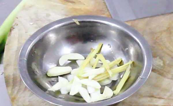 準備大蒜幾粒,切成片備用。