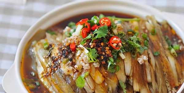 1、茄子對半切開,入鍋蒸透。大蒜切粒,香蔥切段,辣椒切段;