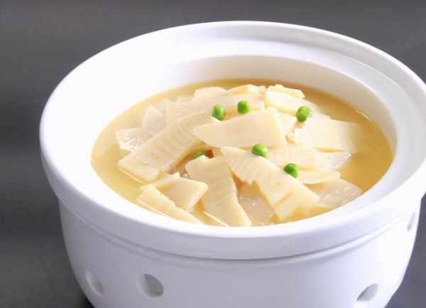 材料:春筍500克,清雞湯600克,雞腿菇100克,鹽適量