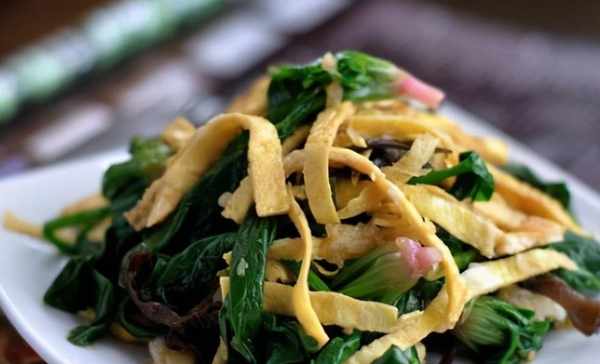 材料:菠菜、雞蛋、黑木耳、精鹽、植物油、醬油、大蒜、香油