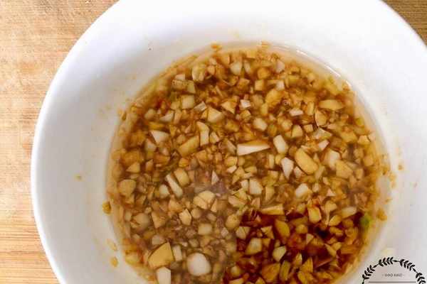 3、減肥的朋友可以忽略大蒜淋入熱油的那個環節,直接蒜末加上食鹽和生抽淋入即可,建議加入少許芝麻香油提香。