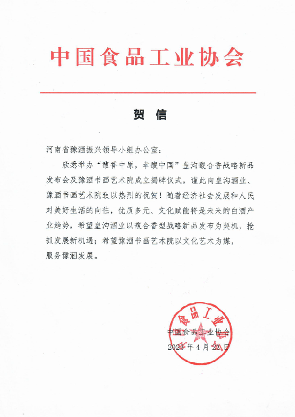 在豫酒書畫藝術院成立之際,中國酒業協會、中國食品工業協會紛紛發來賀信表示慶祝,希望豫酒書畫藝術院以文化藝術為媒,服務豫酒發展。