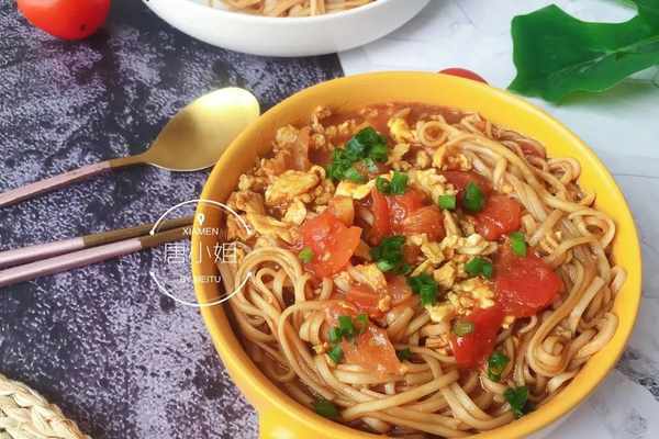 制作過程:1、我們先將西紅柿削皮切成小塊,碗中打入兩個雞蛋,加點胡椒粉攪拌充分混合打散;2、起鍋燒油,油熱後,將雞蛋先下鍋煸炒至凝固,盛起來備用;再將西紅柿下鍋煸炒至軟爛出汁,再把雞蛋下鍋一起炒,加點老抽、生抽、白砂糖提味提色。3、鍋中水煮沸後,將掛面下鍋煮,煮熟後和西紅柿一起攪拌混合,這樣一道西紅柿拌面就做好瞭。