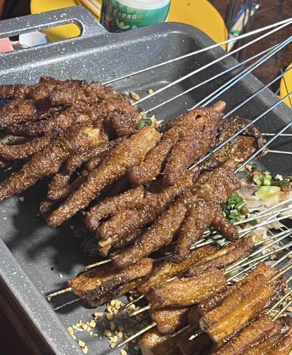 很符合成都美食風格的“爛偏偏”燒烤,食材很新鮮,烤虎皮雞爪一定是必點,軟糯焦香。前提是一定要去得早,菜品比較少,也容易排隊。