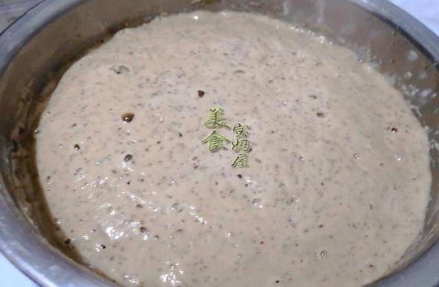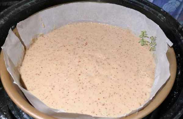 3、面糊發酵好後,體積明顯變大,面糊表面還會有很多的氣泡,說明已經發酵好瞭,用筷子攪拌一下,把裡面的空氣排出,然後把發酵好的面糊倒入模具或者容器中,在案板上震動幾下,表面蓋上蓋子或者保鮮膜,避免蒸的時候,水蒸氣滴落到棗糕上面,寶媽在上面蓋瞭一個蓋子。鍋中加水,然後冷水把模具或者容器放入蒸鍋中,大火燒開,水開上汽後轉中火蒸30分鐘就可以瞭