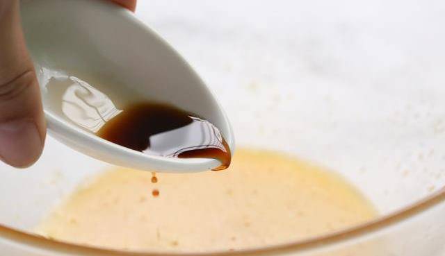 2、蛋液中滴入香草精攪打均勻。
