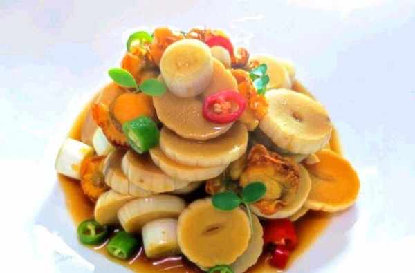 扇貝250克、獨頭蒜500克、青紅椒、香椿苗、香醋、白糖、醬油