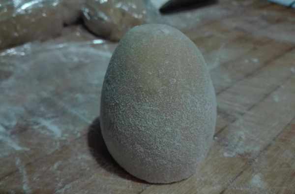 8、將分好的劑子,取一個在案板上繼續揉均勻,然後將其整理成形為饅頭形狀,這樣一個饅頭胚就制作好瞭,如圖所示。