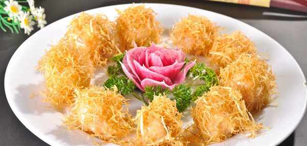 金絲蝦球是一道由土豆、鮮蝦仁等做成的美食
