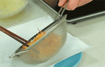 12、蝦二次下鍋復炸至表面呈金黃色後撈出