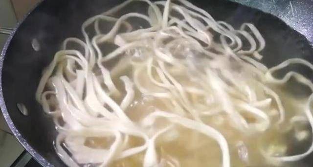 水開後,下入面條用筷子攪拌一下,防止粘連。下午青菜大火煮開,看一下這樣做的面條非常的好。把面撈出來。不會做手搟面的,可以試一下這種做法,這樣做出來的面非常的筋道,也非常的棒。生活中對於美食你有什麼?自己的經驗或者秘訣嗎?歡迎在評論區與美味叭叭叭互動吆!