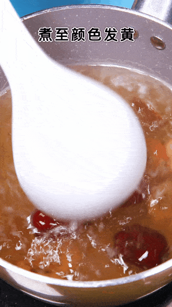 3,煮至顏色發黃,然後借助篩網,過濾一下茶的殘渣,放置溫熱即可喂給寶寶喝瞭!