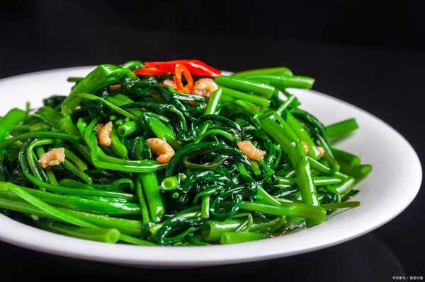 清炒空心菜是一道清爽的減脂菜,做法也非常簡單。將空心菜洗凈後焯水,然後放上蒜蓉適量的鹽和美極鮮味雞精翻炒幾下即可。