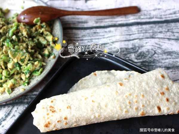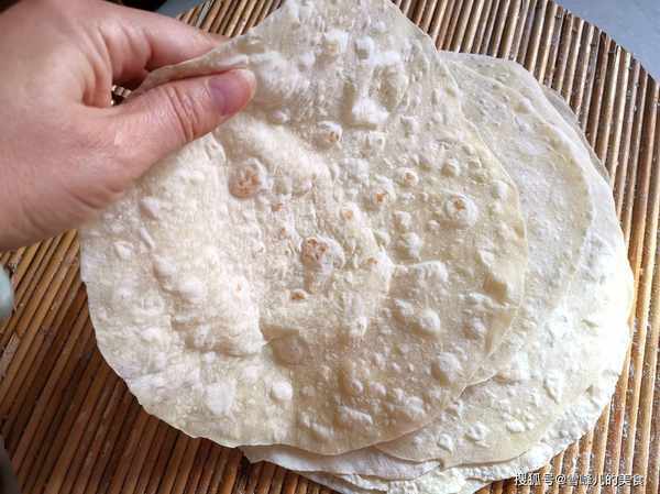 第五步:出鍋的小餅,柔軟有彈性,卷什麼都很香,烙制這款小餅一定不要時間過長,隻要看見鼓起就是熟透瞭。值得註意的是,一定要燙面做這款小餅,不然小餅在烙制過程中是不起泡的,烙出的小餅也會發硬。