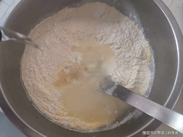 第一步:烙制這一款小餅,需要用開水和面,也就是我們常說的燙面,燙面可以燙去面粉的筋性,從而讓撈出的小餅更柔軟更好操作。