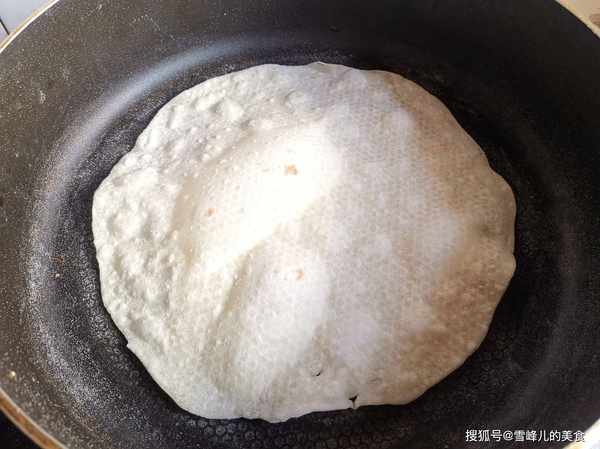 第四步:烙1分鐘,翻面繼續烙制,這個時候面餅就會鼓起大泡泡,這樣小餅就熟透瞭,直接出鍋即可。