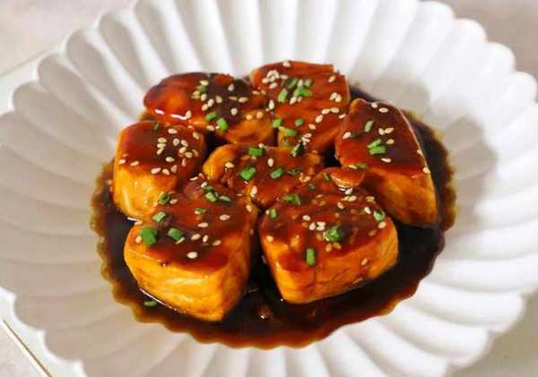材料:三文魚200克,生抽2勺,蠔油1勺,老抽半勺,白酒半勺,白醋半勺,蜂蜜1勺,水100毫升,白芝麻適量
