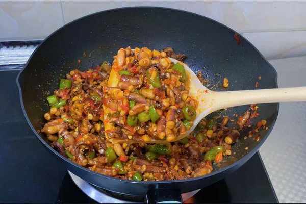 食材:魷魚須、豆瓣醬、青椒、小米辣、薑、蒜、蔥