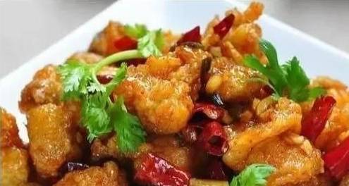 7.參加炸好的雞塊,疾速翻炒至雞塊平均裹上調味料便可出鍋。