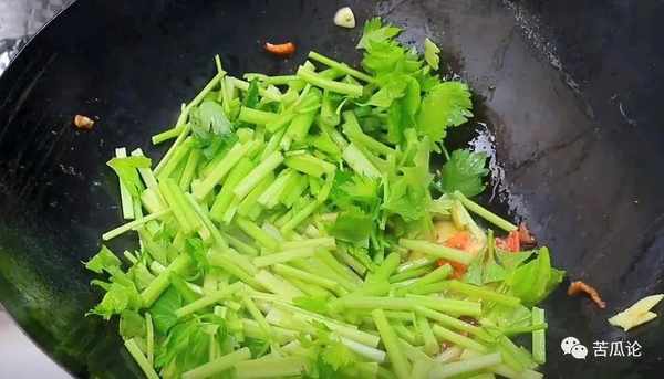 ⑤倒入芹菜,放點食鹽炒至斷生。