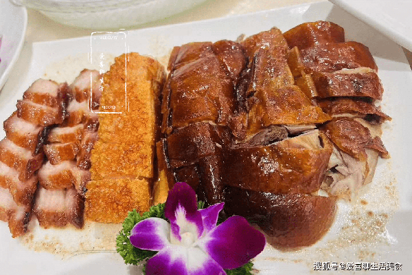 第二道菜的脆皮烤鴨,這道菜是飯店提前烤好的,食客們點好後,隻要去骨切片,就能上桌瞭,裡面還搭配醬油肉、香炸裡脊,擺出好看的造型,看瞭讓人很有食欲。醬油肉是把豬肉放入醬油中醃制好後煮熟,然後用保鮮膜卷緊,放入冰箱冷藏,有人點單取出來切片即可。香炸裡脊肉,也是用裡脊肉醃制好後,拌上雞蛋液和面包糠,放入鍋中炸熟,然後切片裝盤即可。