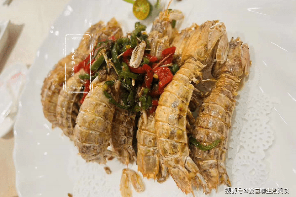 第六道菜是皮皮蝦,他們可能特別愛吃蝦,這已經是第三種蝦瞭哈,皮皮蝦在我們這裡挺貴的,在廣東應該還可以吧,看這量比剛才多多瞭。把皮皮蝦放入碗中,加薑絲、蔥絲、白醋拌勻,鍋中燒油,油熱放入皮皮蝦炸2分鐘後撈出,鍋留底油,倒入蔥花、薑絲、幹辣椒炒香,再放皮皮蝦翻炒,撒一些鹽、孜然粉、辣椒粉和蔥花,即可出鍋裝盤。