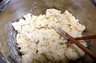 首先取出2/3的面粉倒入一個大盆中,隨後往裡面倒入適量的溫水,一邊倒入的同時一邊用筷子將其攪拌成絮狀。再用手將面粉揉搓成光滑的面團,想要面餅烙制出來軟香多層,面團的醒發也是非常重要的,將有好的面團蓋上一層保鮮膜,放到溫度適宜的地方進行醒發。