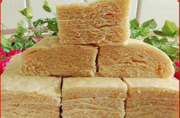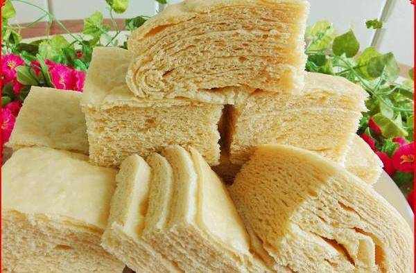 6.兩邊向中間疊成三層(該步驟重復三次:搟成長方形面片刷油撒面粉將面粉與油刷勻兩邊向中間疊成三層)