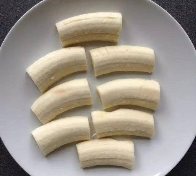 香蕉切片,再把它們縱線切成兩半。