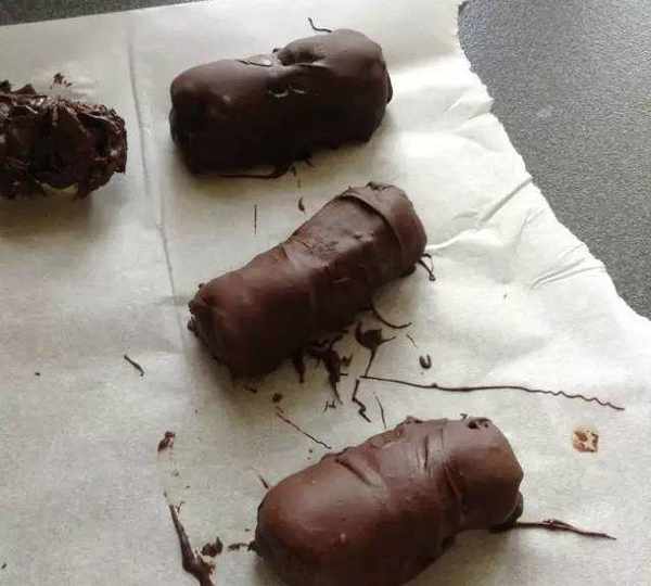 接著拿出香蕉,一個一個的裹上巧克力漿。