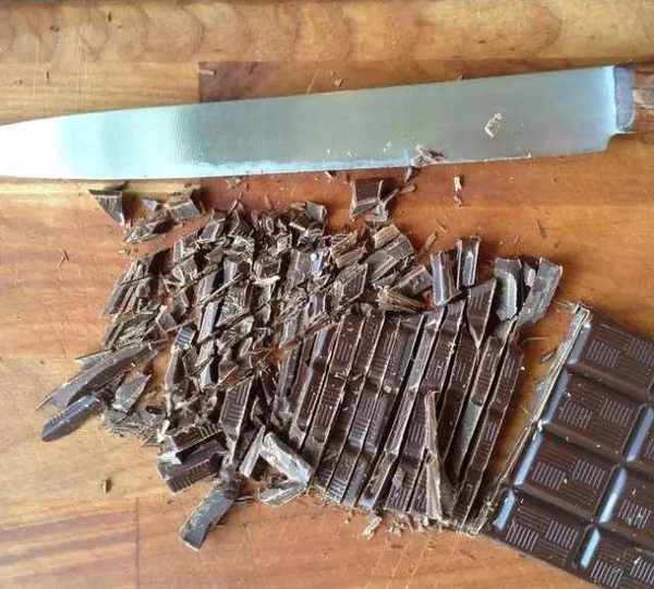 接著,切出7盎司的黑巧克力並剁碎。